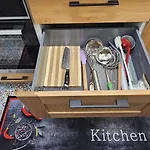 - ❓Is there a kitchen available at the apartment for guest use?Yes, the apartment is furnished with a full kitchen and offers a refrigerator, an oven, and kitchenware as well.